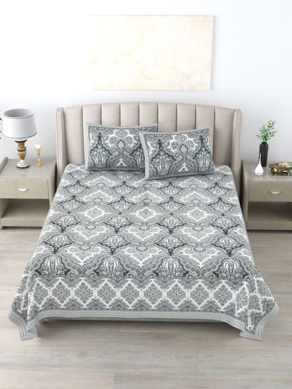 100% Pure Cotton Traditional Printed Bedsheet for Double Bed King Size Bedsheet with 2 Pillow Covers